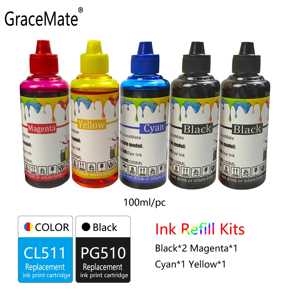GraceMate PG510 CL511 Printer Ink Refill Ink Bottle Replacement For Canon For MP240 MP250 MP260 MP280 MP480 MP490 IP2700 MP499