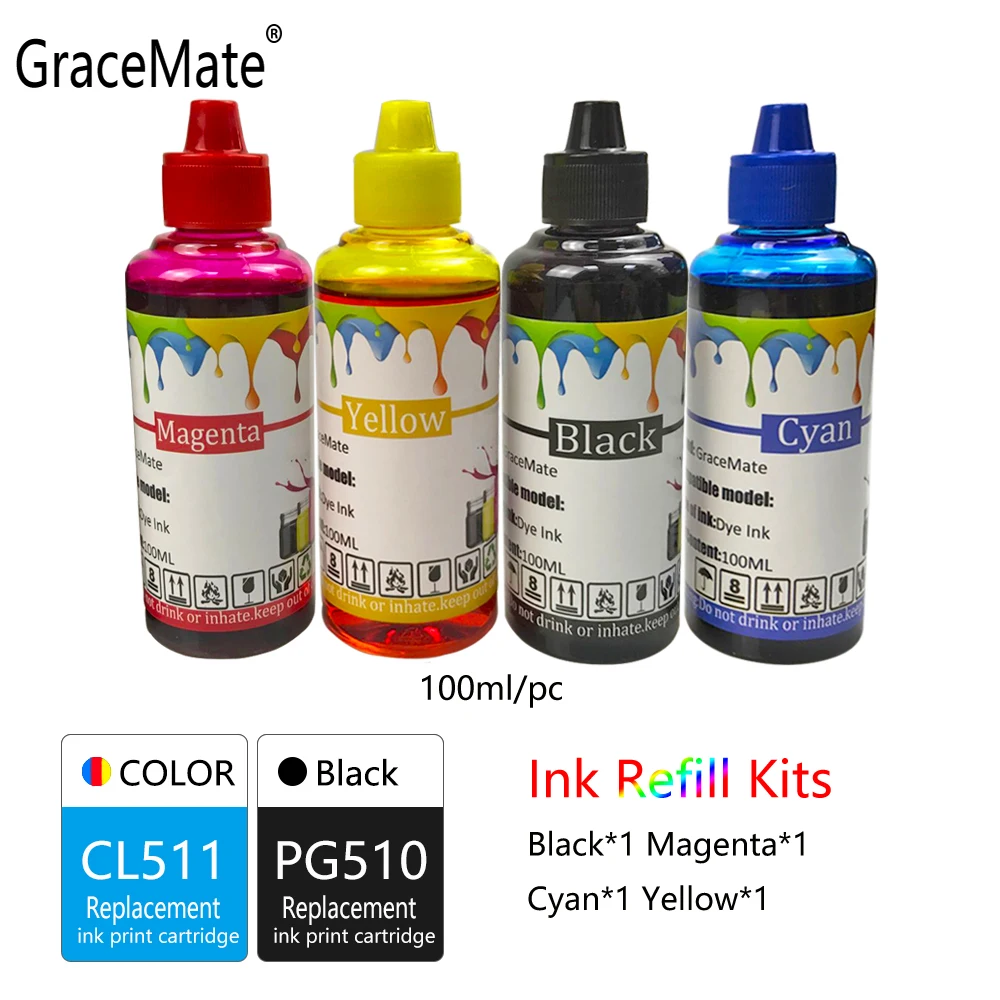 | GraceMate PG510 CL511 Printer Ink Refill Ink Bottle Replacement For Canon For MP240 MP250 MP260 MP280 MP480 MP490 IP2700 MP499 |