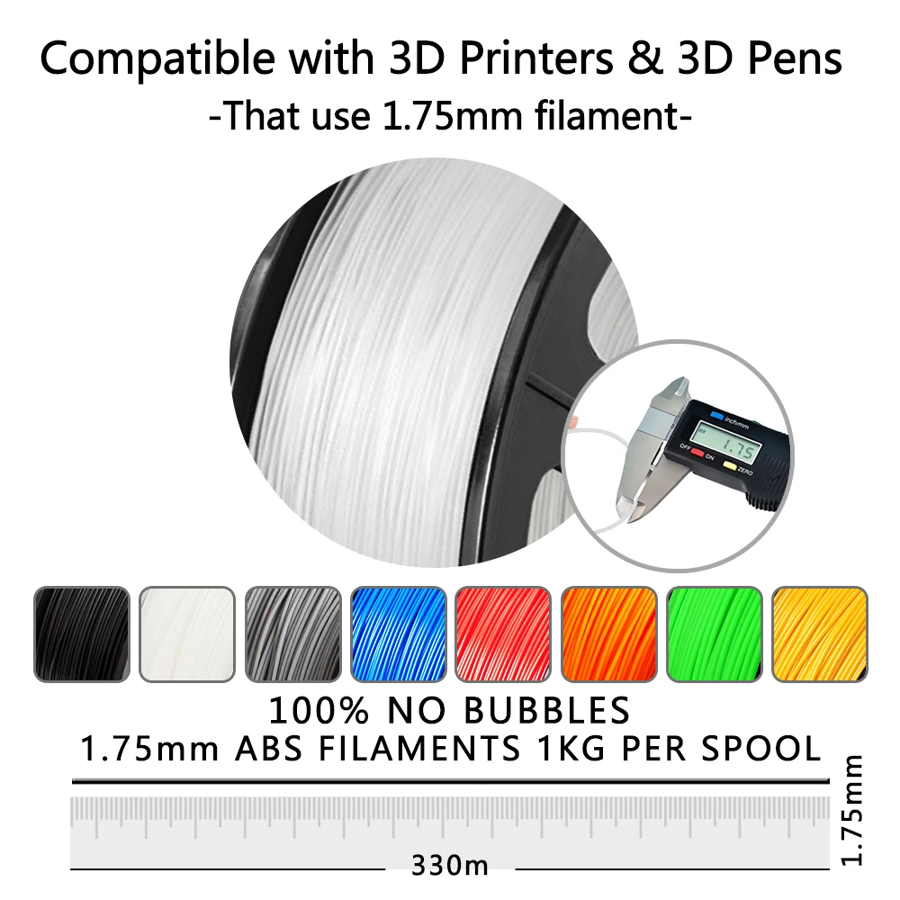 SUNLU ABS 3D Printer Filament ABS Filament 1.75 mm 3D Printing filament Low Odor Dimensional Accuracy +- 0.02 mm 2.2 LBS (1KG)