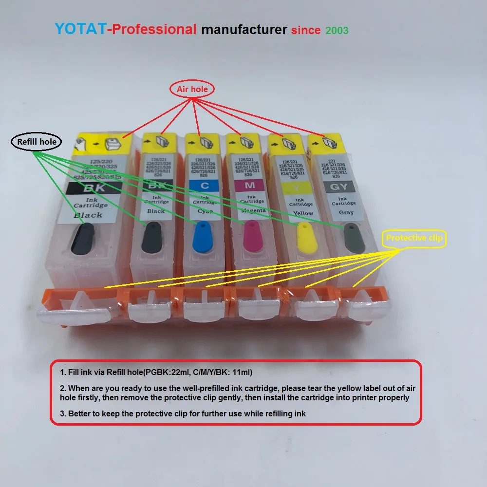 | 1set refillable ink cartridge for canon PGI520 CLI521 for canon Pixma MP540MP550MP560MP620MP630MP640MP980MP990MX860 |