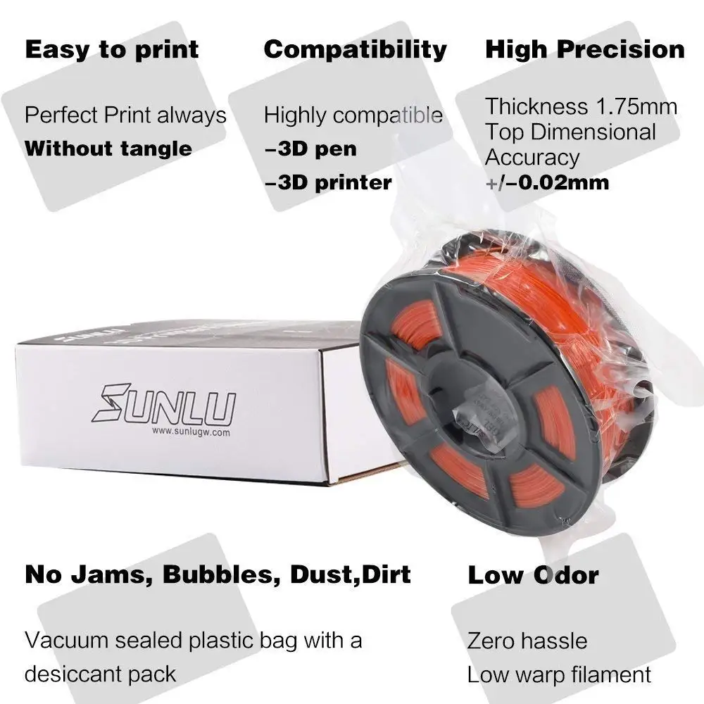 SUNLU PLA PLUS 3D Printer Filament PLA plus 1.75mm PLA+ Filament 2.2 LBS 1kg Spool 3D Filament for 3D Printers and 3D PensBuy Now On Aliexpress
