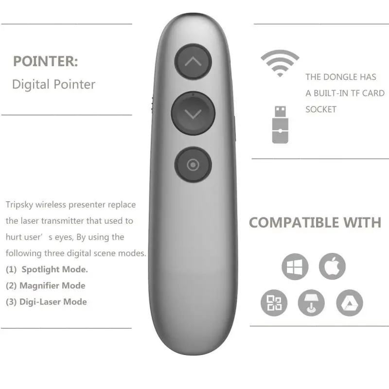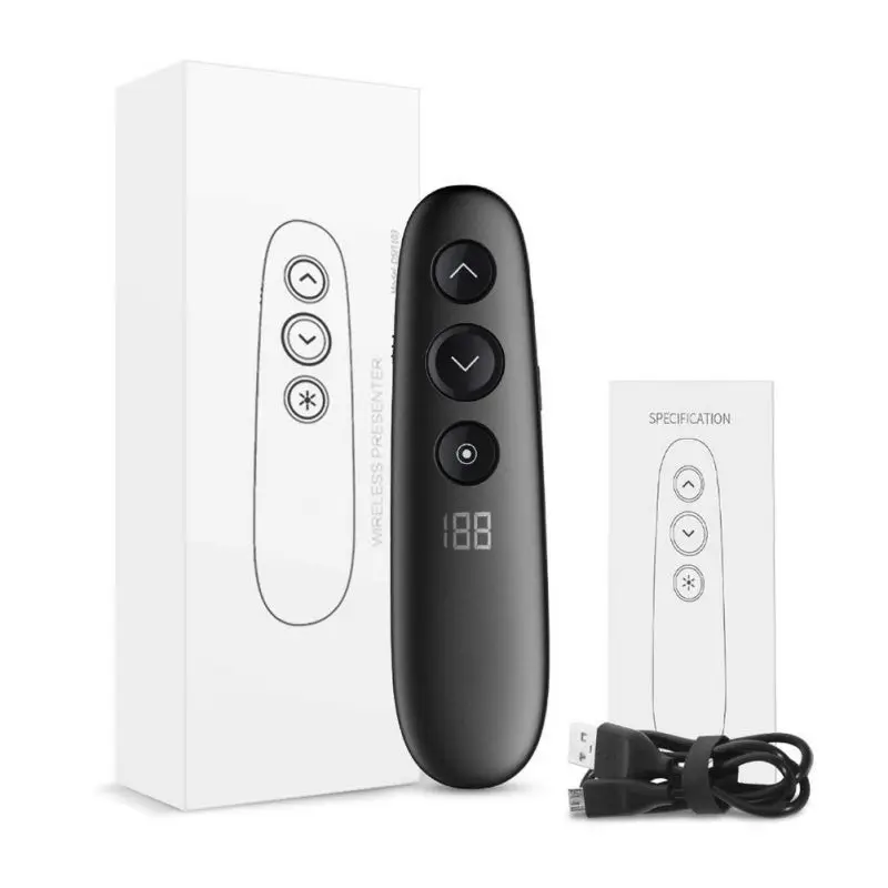 | Wireless Presenter Highlighting Magnify Digital Pointer Air Mouse Function USB Rechargeable Powerpoint Presentation Clicker |