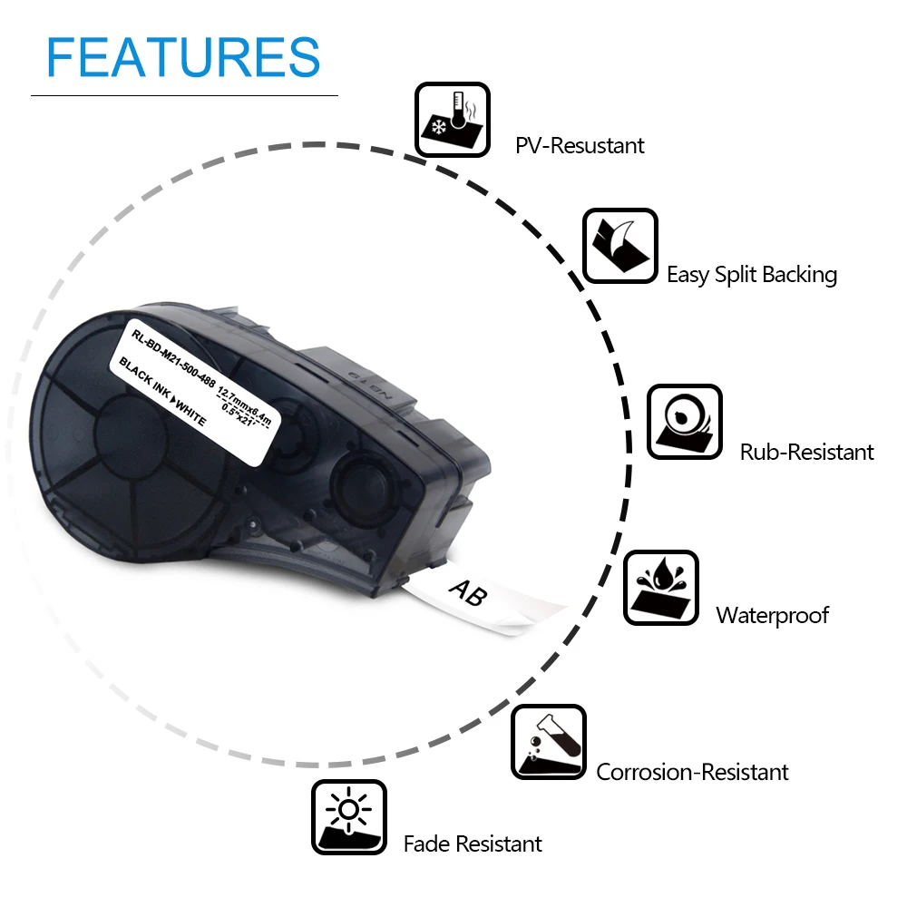 Topcolor 10PK M21-500-488 Polyester Fit for Brady Label Tape 12.7mm Black on White Printer Ribbon for BMP21 IDPAL Labpal PrinterBuy Now On Aliexpress