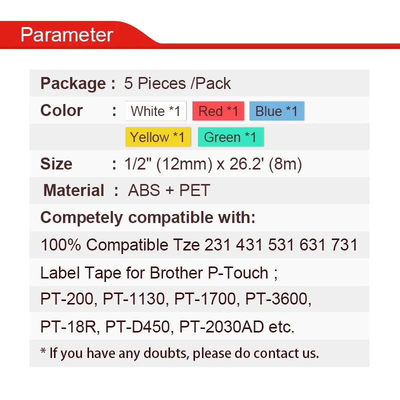 You are looking for "HWDID 5PK mix colors TZe-231 431 TZe-531 TZ 631 tze-731 label makertape 12mm x 8m for Brother P-touch printer ribbon Tze 231" , this product is ready to be purchased. don't forget to bookmark this site, so you can come back here anytime. Get special discount by shopping on aliexpress site, because new buyers will get a decent discount coupon. To buy this product, please click the buy link bellow.