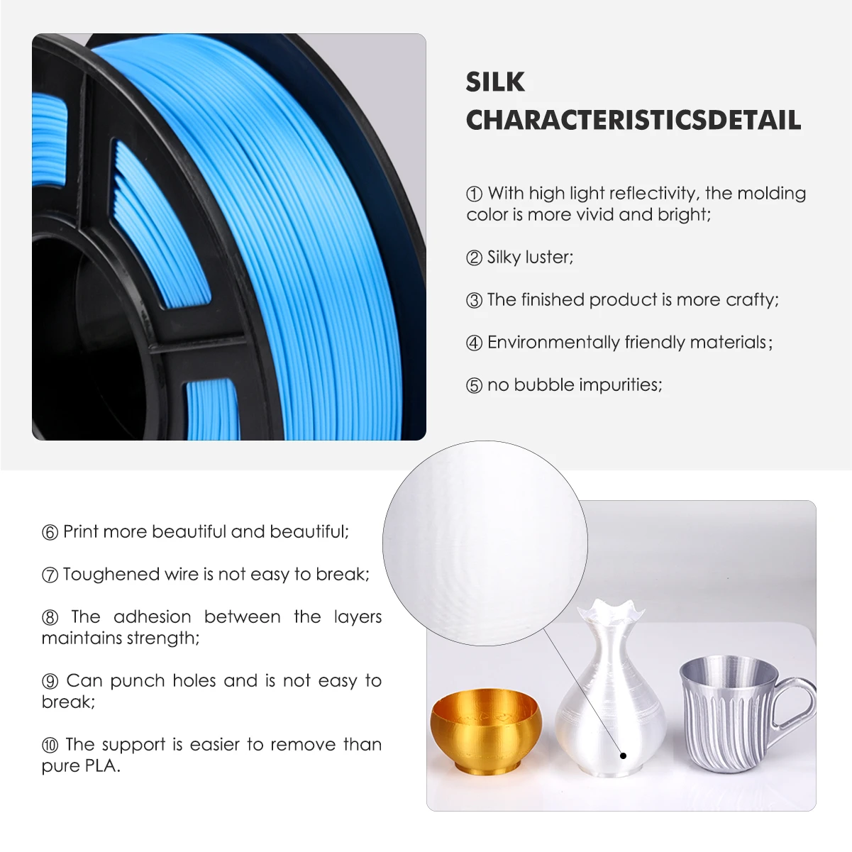| pla filament 1.75mm 1kg Blue SILK 1kg 2.2 lbs 1.75mm per roll 3D Printer Filament DIY for 3D printing Refills golden |